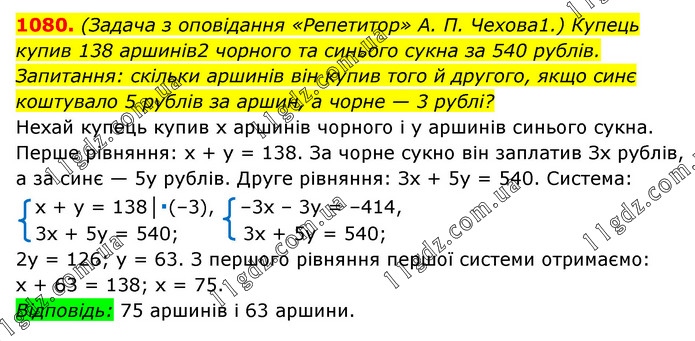 § 4. Системи лінійних рівнянь із двома змінними » 1080