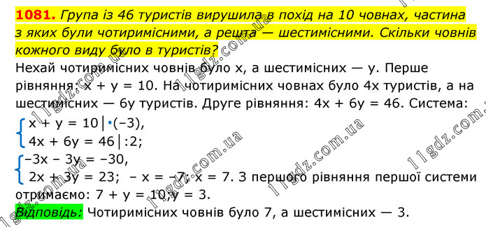§ 4. Системи лінійних рівнянь із двома змінними » 1081