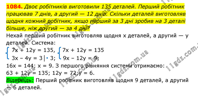 § 4. Системи лінійних рівнянь із двома змінними » 1084