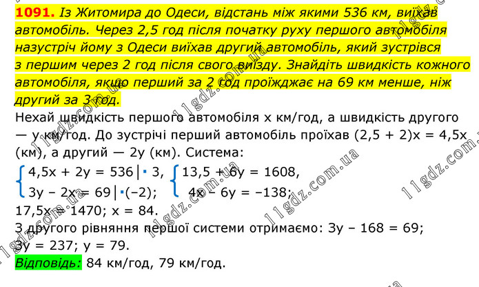 § 4. Системи лінійних рівнянь із двома змінними » 1091