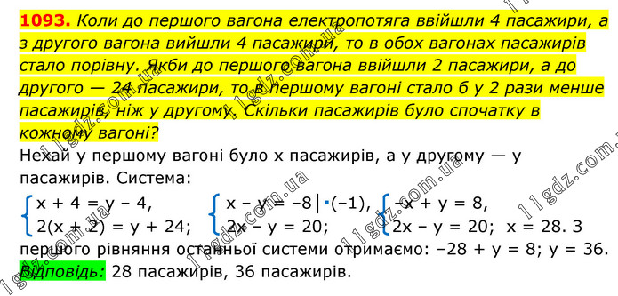 § 4. Системи лінійних рівнянь із двома змінними » 1093