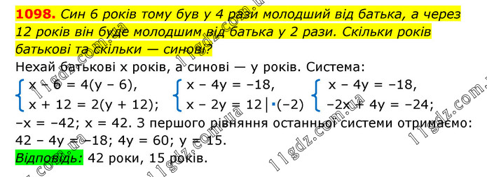 § 4. Системи лінійних рівнянь із двома змінними » 1098