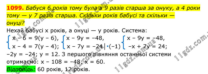 § 4. Системи лінійних рівнянь із двома змінними » 1099