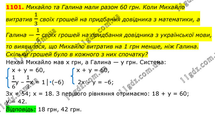 § 4. Системи лінійних рівнянь із двома змінними » 1101
