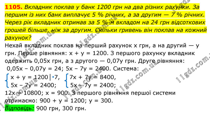 § 4. Системи лінійних рівнянь із двома змінними » 1105