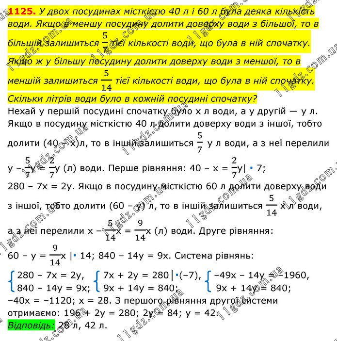 § 4. Системи лінійних рівнянь із двома змінними » 1125