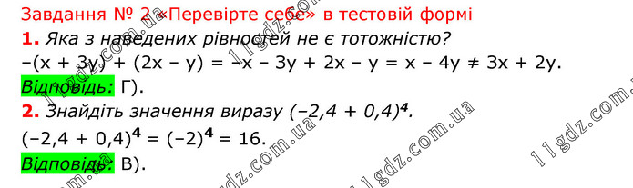 ПЕРЕВІР СЕБЕ В ТЕСТОВІЙ ФОРМІ » №2 (1-2)