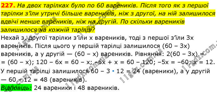 1. ЛІНІЙНІ РІВНЯННЯ З ОДНІЄЮ ЗМІННОЮ » 227