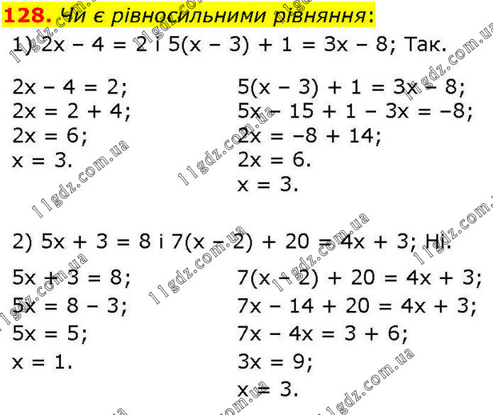 1. ЛІНІЙНІ РІВНЯННЯ З ОДНІЄЮ ЗМІННОЮ » 128 (1-2)