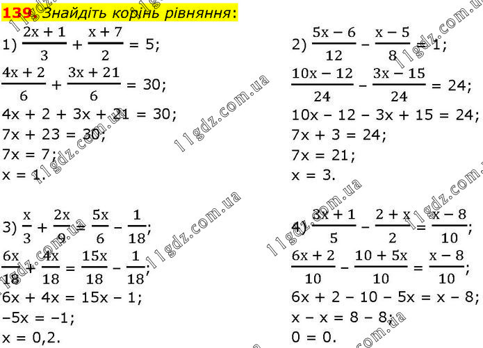 1. ЛІНІЙНІ РІВНЯННЯ З ОДНІЄЮ ЗМІННОЮ » 139