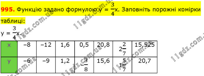 Функцію задано формулою у = 3/4х. Заповніть порожні комірки таблиці: у = 3/4х.