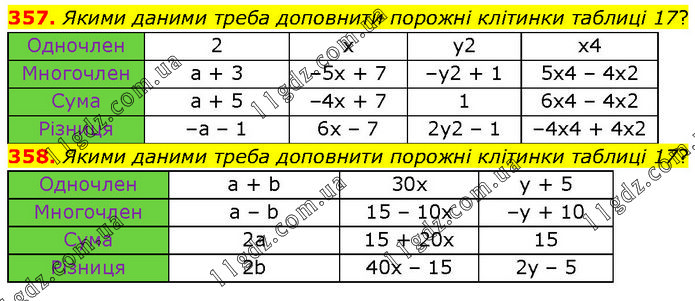 Роздiл 3. Одночлени i многочлени » 357-358
