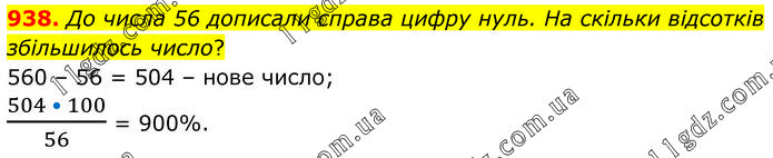 До числа 56 дописали справа цифру нуль. На скільки відсотків збільшилось число? 560 – 56 = 504 – нове число; (504 • 100)/56 = 900%.