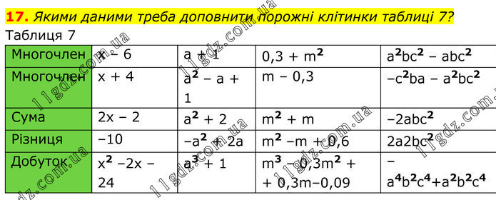 Розділ 3. Одночлени і многочлени » 17