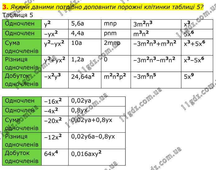 Розділ 3. Одночлени і многочлени » 3