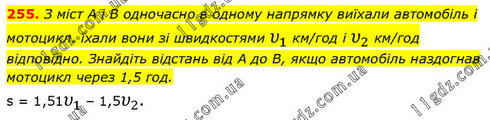 З міст А і В одночасно в одному напрямку виїхали автомобіль і мотоцикл. їхали вони зі швидкостями υ_1 км/год і υ_2 км/год відповідно. Знайдіть відстань від А до В, якщо автомобіль наздогнав мотоцикл через 1,5 год. s = 1,51υ_1 – 1,5υ_2.