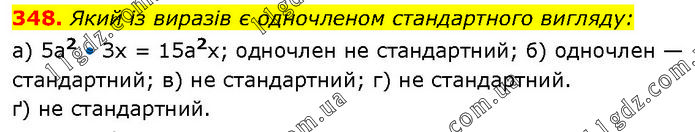 Який із виразів є одночленом стандартного вигляду: а) 5а2 • Зх = 15а2x; одночлен не стандартний; б) одночлен — стандартний; в) не стандартний; г) не стандартний. ґ) не стандартний.