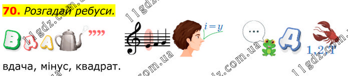 Розгадай ребуси. вдача, мінус, квадрат.