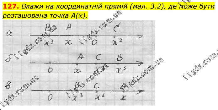 Вкажи на координатній прямій (мал. 3.2), де може бути розташована точка А(х).