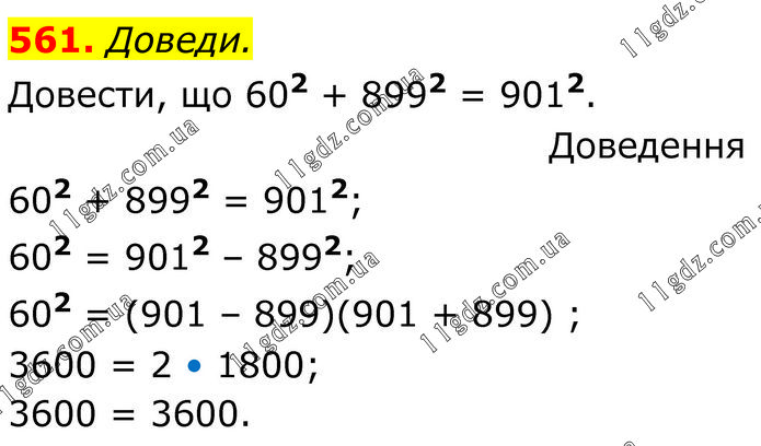 Доведи. Довести, що 602 + 8992 = 9012. Доведення 602 + 8992 = 9012; 602 = 9012 – 8992; 602 = (901 – 899)(901 + 899) ; 3600 = 2 • 1800; 3600 = 3600.