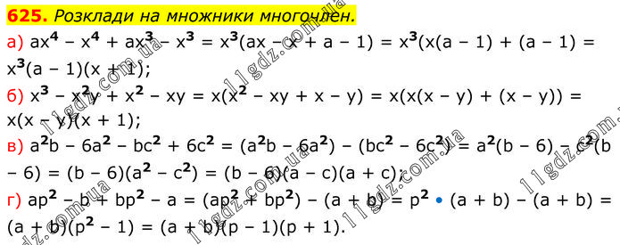 Розділ 2. РОЗКЛАДАННЯ МНОГОЧЛЕНІВ » 625
