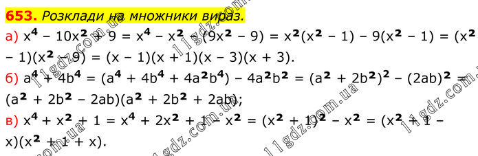 Розділ 2. РОЗКЛАДАННЯ МНОГОЧЛЕНІВ » 653