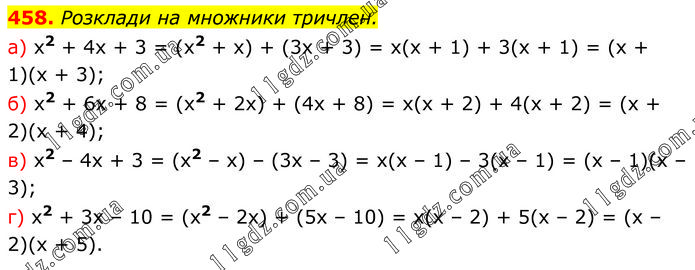 Розділ 2. РОЗКЛАДАННЯ МНОГОЧЛЕНІВ » 458