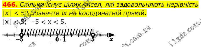 Скільки існує цілих чисел, які задовольняють нерівність |х| < 5? Позначте їх на координатній прямій. |x| < 5; –5 < x < 5.