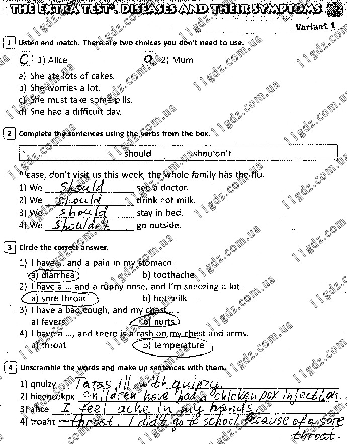 The Extra Test. Diseases and Their Symptoms Variant 1