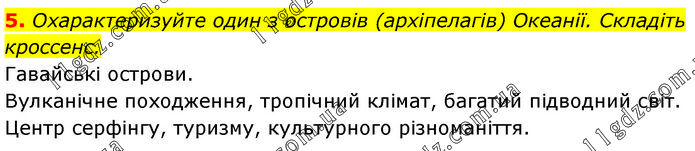 Охарактеризуйте один з островів (архіпелагів) Океанії. Складіть кроссенс. Гавайські острови. Вулканічне походження, тропічний клімат, багатий підводний світ. Центр серфінгу, туризму, культурного різноманіття.