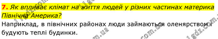 Як впливає клімат на життя людей у різних частинах материка Північна Америка? Наприклад, в північних районах люди займаються оленярством і будують теплі будинки.