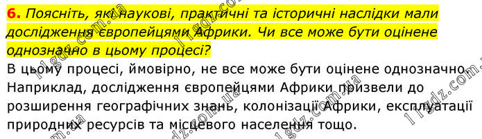 Поясніть, які наукові, практичні та історичні наслідки мали дослідження європейцями Африки. Чи все може бути оцінене однозначно в цьому процесі? В цьому процесі, ймовірно, не все може бути оцінене однозначно. Наприклад, дослідження європейцями Африки призвели до розширення географічних знань, колонізації Африки, експлуатації природних ресурсів та місцевого населення тощо.
