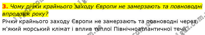 Чому річки крайнього заходу Європи не замерзають та повноводні впродовж року? Річки крайнього заходу Європи не замерзають та повноводні через м'який морський клімат і вплив теплої Північноатлантичної течії.