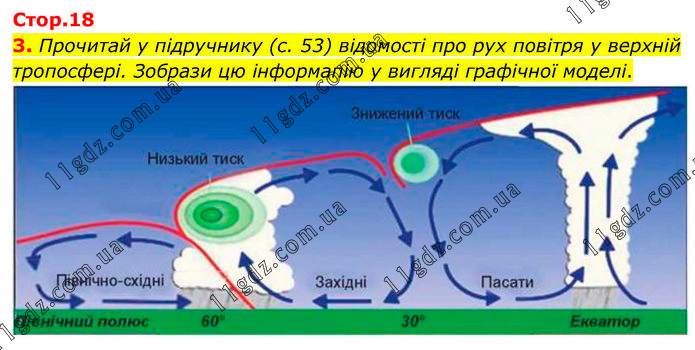 Прочитай у підручнику (с. 53) відомості про рух повітря у верхній тропосфері. Зобрази цю інформапію у вигляді графічної моделі.