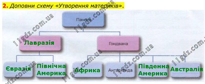 Доповни схему «Утворення материків».