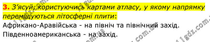 З’ясуй, користуючись картами атласу, у якому напрямку переміщуються літосферні плити: Африкано-Аравійська - на північ та північний захід. Південноамериканська - на захід.
