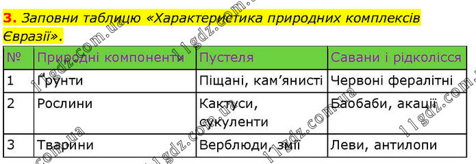 Заповни таблицю «Характеристика природних комплексів Євразії».