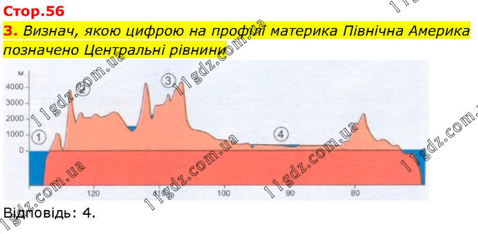 Визнач, якою цифрою на профілі материка Північна Америка позначено Центральні рівнини Відповідь: 4.