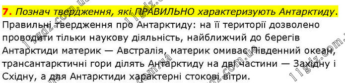 Познач твердження, які ПРАВИЛЬНО характеризують Антарктиду. Правильні твердження про Антарктиду: на її території дозволено проводити тільки наукову діяльність, найближчий до берегів Антарктиди материк — Австралія, материк омиває Південний океан, трансантарктичні гори ділять Антарктиду на дві частини — Західну і Східну, а для Антарктиди характерні стокові вітри.