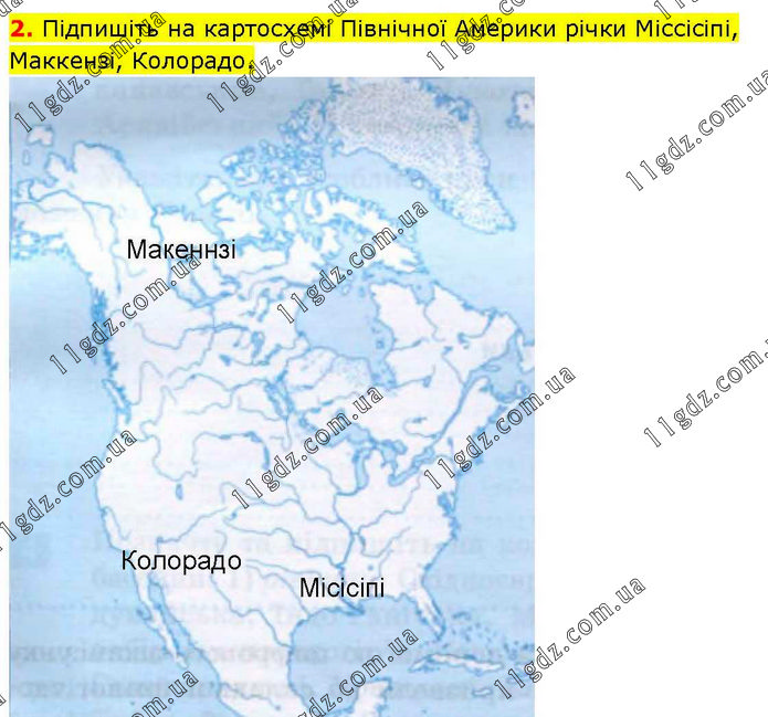 Підпишіть на картосхемі Північної Америки річки Міссісіпі, Маккензі, Колорадо.