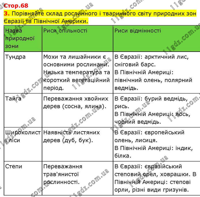 Порівняйте склад рослинного і тваринного світу природних зон Євразії та Північної Америки.