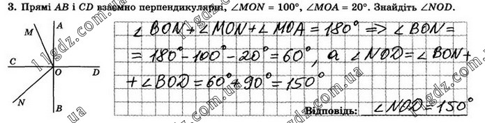 Прямі АВ і CD взаємно перпендикулярні, MON = 100°, MOA = 20°. Знайдіть NOD.