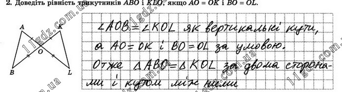 Доведіть рівність трикутників АBО і KLO, якщо AO = ОК і BO = OL.