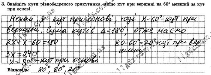 Знайдіть кути рівнобедреного трикутника, якщо кут при основі на 30° більший за кут при вершині.