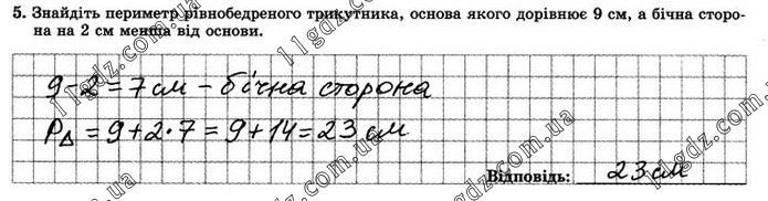 Знайдіть периметр рівнобедреного трикутника, основа якого дорівнює 9 см, а бічна сторона на 2 см менша від основи.