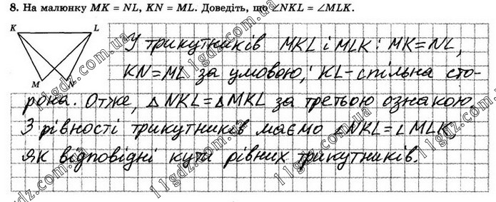 На малюнку МК = NL, КN = МL. Доведіть, що NKL = MLK.