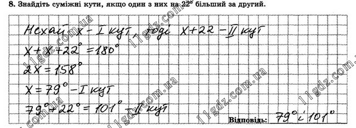 Знайдіть суміжні кути, якщо один з них на 22° більший за другий.