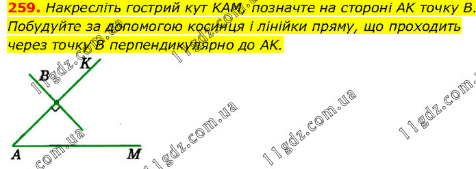 Накресліть гострий кут KAM, позначте на стороні AK точку В. Побудуйте за допомогою косинця і лінійки пряму, що проходить через точку В перпендикулярно до AK.