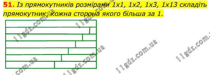 Із прямокутників розмірами 1x1, 1x2, 1x3, 1x13 складіть прямокутник, кожна сторона якого більша за 1.