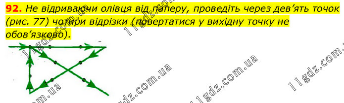 He відриваючи олівця від паперу, проведіть через дев’ять точок (рис. 77) чотири відрізки (повертатися у вихідну точку не обов’язково).